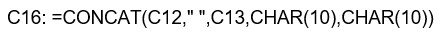 This cell is the data label to be used for the actual bar. It is created using the CONCAT function because this function allows a text string to be built from text, numbers, and special characters. In this case the data series name is combined with the value. There are two New Line characters (CHAR(10)) added at the end so that the data label sits in the actual bar which shows only in the top half of the visual.